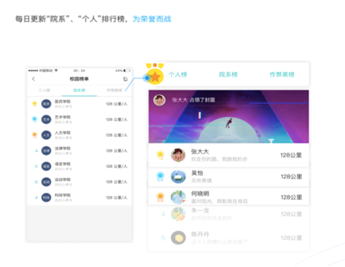 每天统计校园排行榜,排行榜统计以实际跑的千米数为准;
