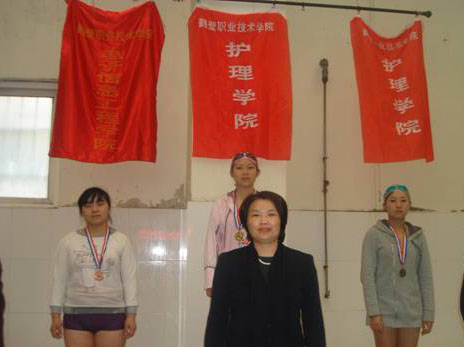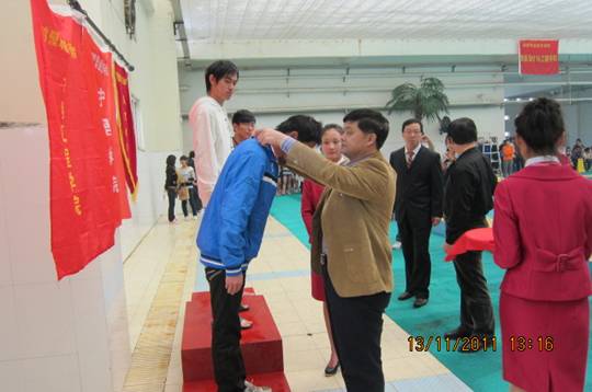 鹤壁市高职体育文化有限公司总经理李坤同志为获奖运动员颁奖
