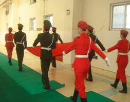 学院领导、全体工作人员及运动员唱国歌、行注目礼