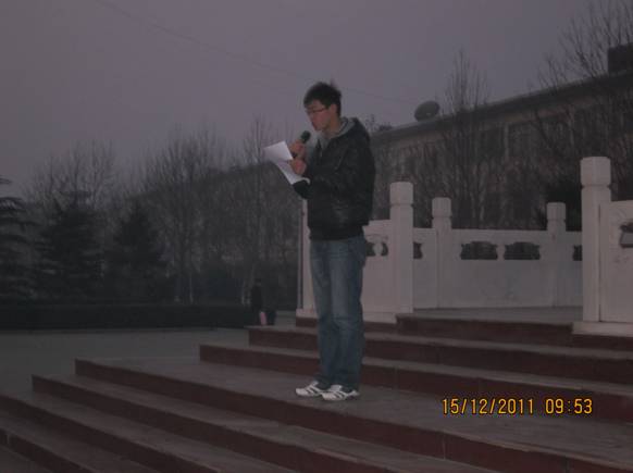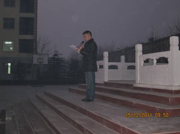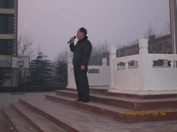 团委孙勇老师宣读“阳光体育与快乐校园同行”冬季长跑活动方案