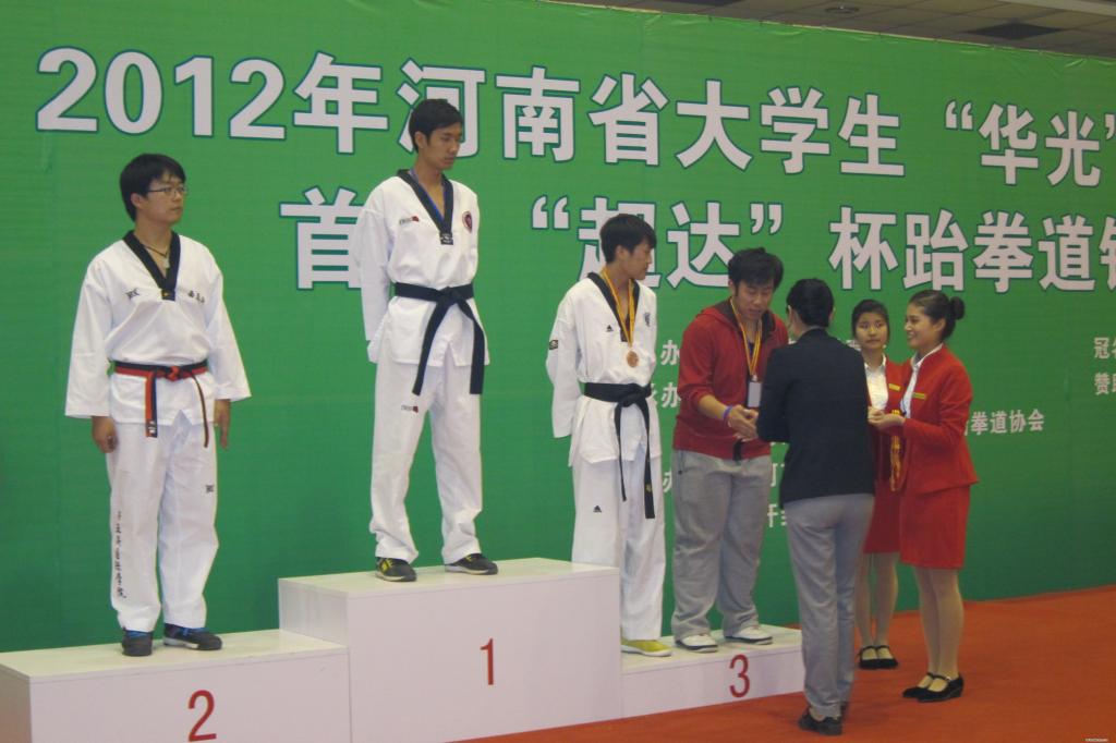 2012年河南省大学生“华光”体育活动首届“超达”杯跆拳道锦标赛于2012年10月28日下午在开封大学胜利闭幕!本届“超达”杯跆拳道比赛历时2天,共有15所高校参加,参赛队员200多名,汇聚了河南省高校跆拳道精英。为积极备战本次运动会,公共体育教研部按照学院领导的要求,于6月份选拔6名队员成立学院跆拳道代表队,在公共体育教研部直接领导下,通过教练组的合理安排、科学训练,提高了运动员的技、战术水平。赛场上运动员不畏强手,斗智斗勇,奋力拼搏,在甲组的比赛中,取得了男子84kg;女子47kg、51kg、55kg的4个级别的铜牌,同时获得了2012年河南省大学生“华光”体育活动首届“超达”杯跆拳道锦标赛“精神文明运动队”荣誉称号,为学院挣得了荣誉,为学院跆拳道今后的发展和提高奠定了坚实的基础。