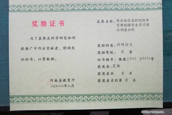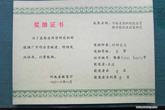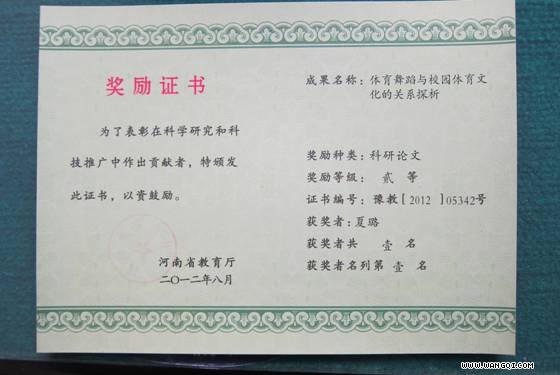 在本次年会上,公体部夏璐老师的两篇论文获得二等奖和三等奖;李波老师的一篇论文获三等奖,并颁发了证书。