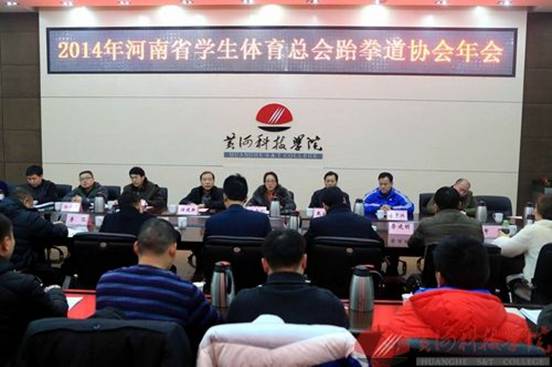 2015年2月1日,2014年河南省学生体育总会跆拳道协会年会暨表先大会在黄河科技学院信息大楼一楼会议室召开。河南省学生体育总会跆拳道协会主席、开封大学党委副书记储建新,河南省学生体育总会跆拳道协会名誉主席、河南省重竞技管理中心主任戴云鹏,黄河科技学院党委副书记赵会利,河南省学生体育总会跆拳道协会副主席王健、李中兴、张广军、白云庆等出席会议。