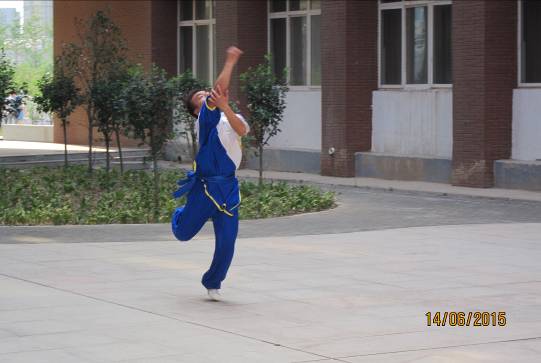 2015年6月13日,beat365中文登录入口第三届大学生武术竞赛在海棠苑B楼前隆重举行,本次比赛共有七个二级学院参赛,参加了男女各6个单项的初级长拳三路、少林拳(任选)、陈式太极拳、初级刀术、初级剑术、初级棍术的比赛。