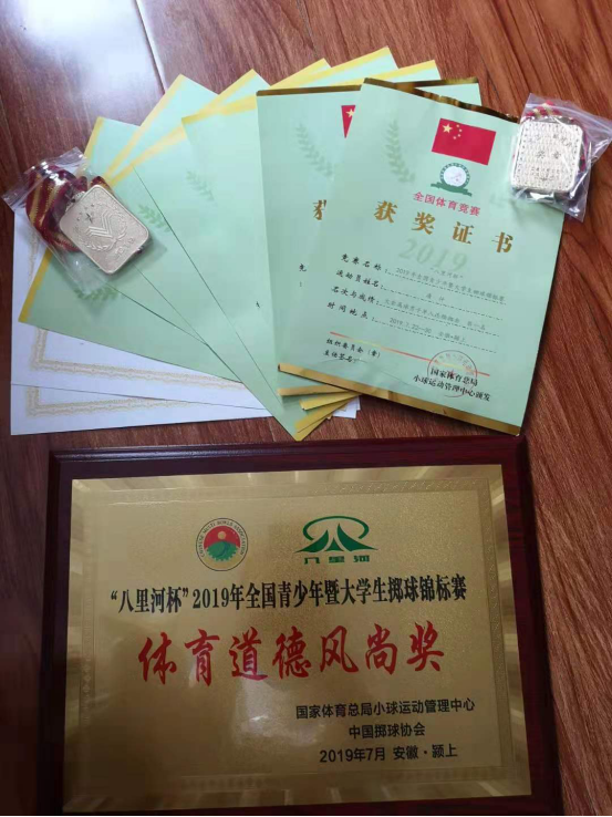 我院派罗培秀和李波老师带领四名运动员参加了本次比赛,参赛队员在比赛中作风顽强,积极拼搏,不畏高温。经过激烈争夺,唐仟同学获得男子大金属连续抛击甲组冠军,魏金灿同学获得男子小金属准确抛击甲组冠军,同时两位运动员还荣获体育道德风尚奖。此外,我院地掷球队还获得小金属男子团体甲组第五名和小金属男子双打甲组第五名的优异成绩!