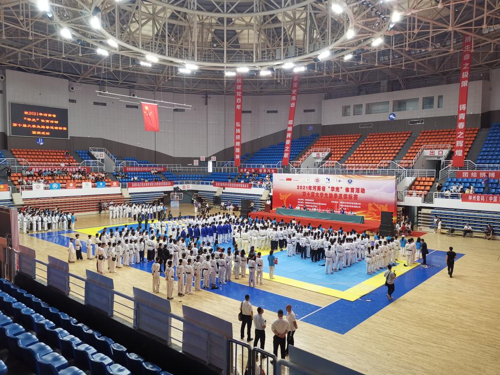 7月17日,2021年河南省“华光”体育活动第十届大学生跆拳道锦标赛在学校千鹤之舞体育馆开幕。大赛共有来自全省45所高校的600余名运动员参加。