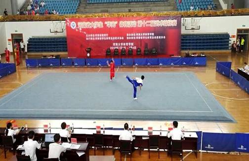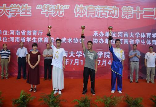 7月1日上午,由河南省教育厅主办、河南大学体育学院承办、河南省学生体育总会高校分会协办的河南省大学生“华光”体育活动第十二届武术锦标赛开幕式在河南大学明伦校区体育馆举行。来自33支高校代表队,分别参加了甲组、乙组、丙组、武术四段内容,设有21个比赛项目。