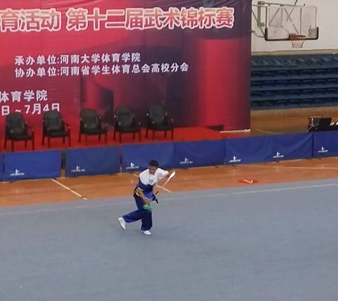 宋少滕(机电工程学院)初级长拳三路第六名、初级棍术第七名;