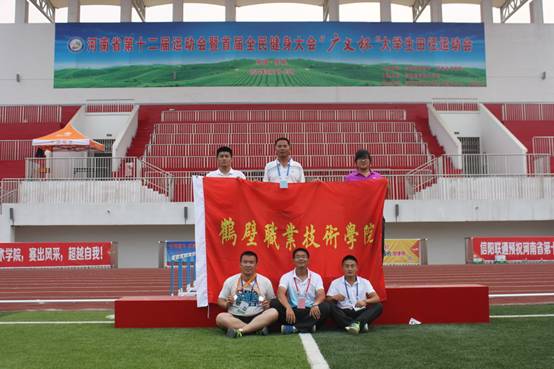 河南省第十二届运动会暨首届全民健身大会大学生组田径运动会于2014年6月7日——13日在信阳职业技术学院举行,共有来自全省89所高校的1300余名大学生运动员、教练员、领队和工作人员参加。在学院领导的大力支持和公共体育教研部全体教师的帮助下,在教练员续延军、秦瑞瑞、李波老师的带领下,运动员刻苦训练,积极备战,比赛中不畏强手取得了较好的成绩。