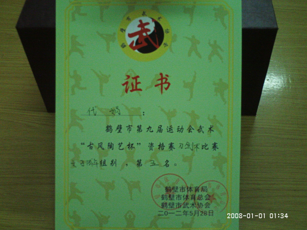 2012年5月26日至28日,在鹤壁市体育馆举行了“鹤壁市第九届运动会武术资格赛”。我院武术代表队在秦瑞瑞、程秋珍和姚红艳3位教练的带领下,共有20名运动员参加本次比赛。