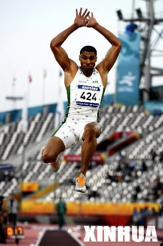 12月9日,沙特选手阿尔·萨巴·侯赛因以8米02的成绩获得多哈亚运会男子跳远冠军。